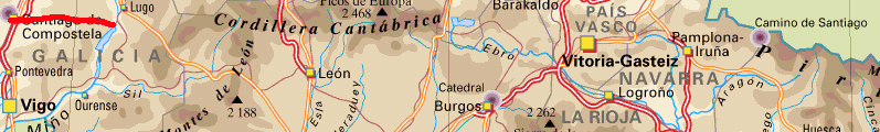 Al llegar a Arzua paramos en un FROIZ a coger los bocatas, nuestros últimos bocatas en el Camino. Nos comimos los bocatas en la calle, sentados en un banco junto al albergue de Arzua. Nos vamos a tomar un café, Juan no está de muy buen humor ya que le está martirizando el catarro que tiene, y al salir se me ocurre preguntar si paramos en el monte do Gozo, Juan responde que de parar nada de nada, que él no para más, ya que cada vez que se detiene se enfría y empeora el catarro, hasta Santiago sin detenerse para nada, dijo. Esas palabras de Juan provocaron en mi un malentendido que me costo caro, eran las 14:30 y nos quedaban 38 Km para Santiago; podíamos llegar perfectamente a la misa del peregrino a las 18:00, de por si podíamos estar a las 16:30 pero el destino nos jugó una mala pasada el último día.